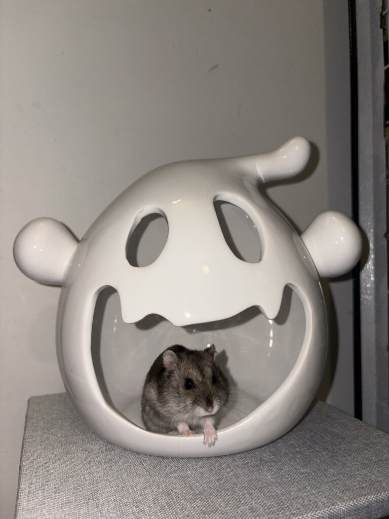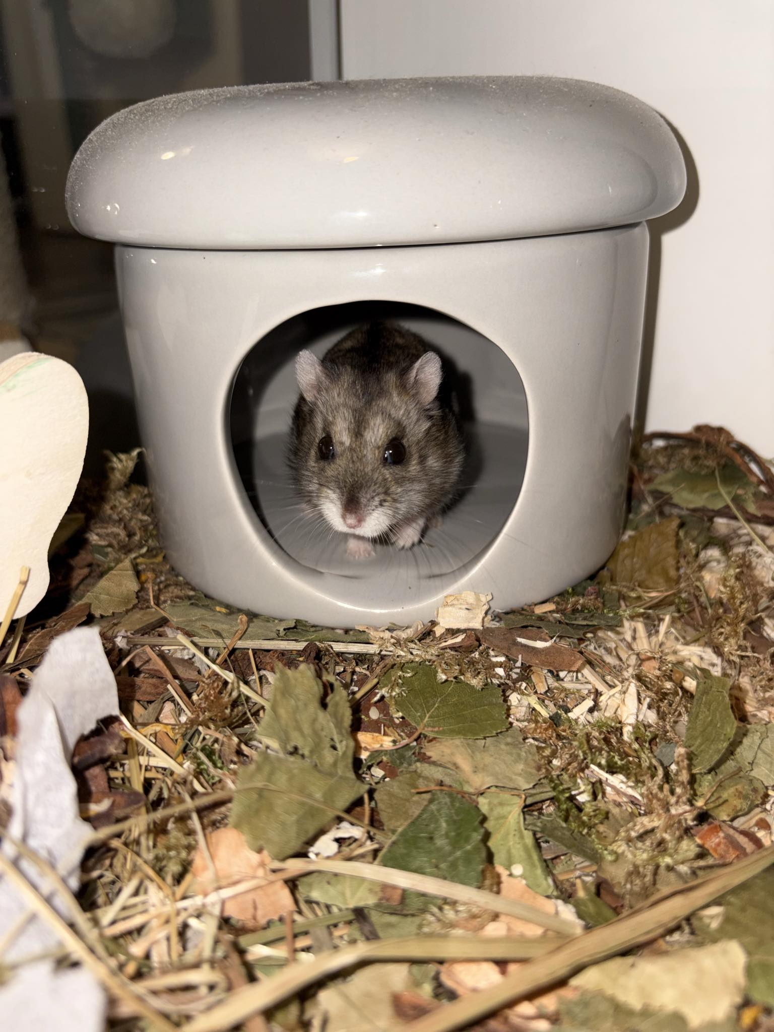 Miky est un jeune hamster hybride, trouvé abandonné dans une toute petite cage sous la pluie.